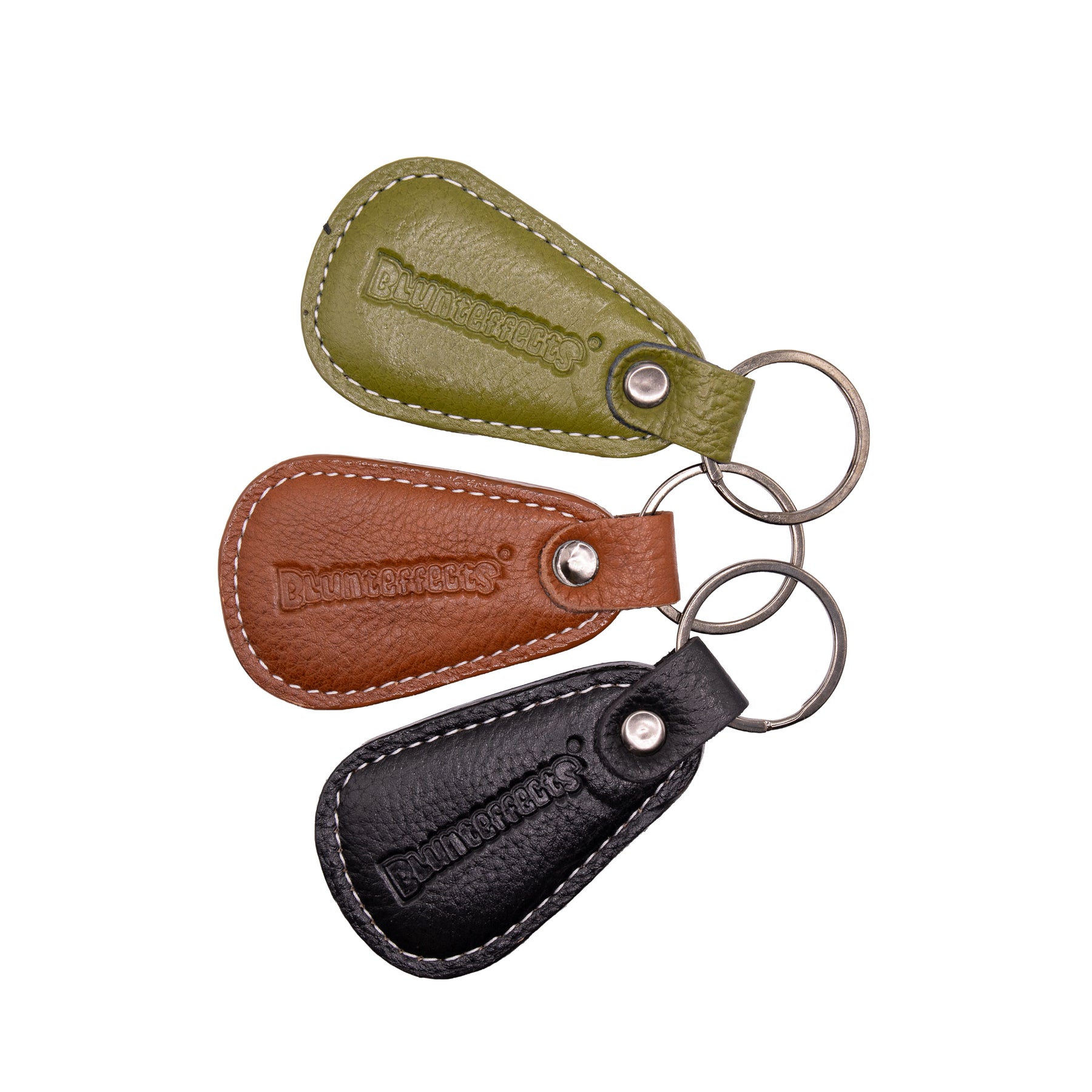 Discover the stylish Blunteffects® leather keychain, the perfect accessory to elevate your everyday carry. Crafted with premium leather, it offers durability and a sleek look. Available in three vibrant colors, it's an ideal merch item for fans and fashion enthusiasts alike. Keep your keys organized with a touch of bling!