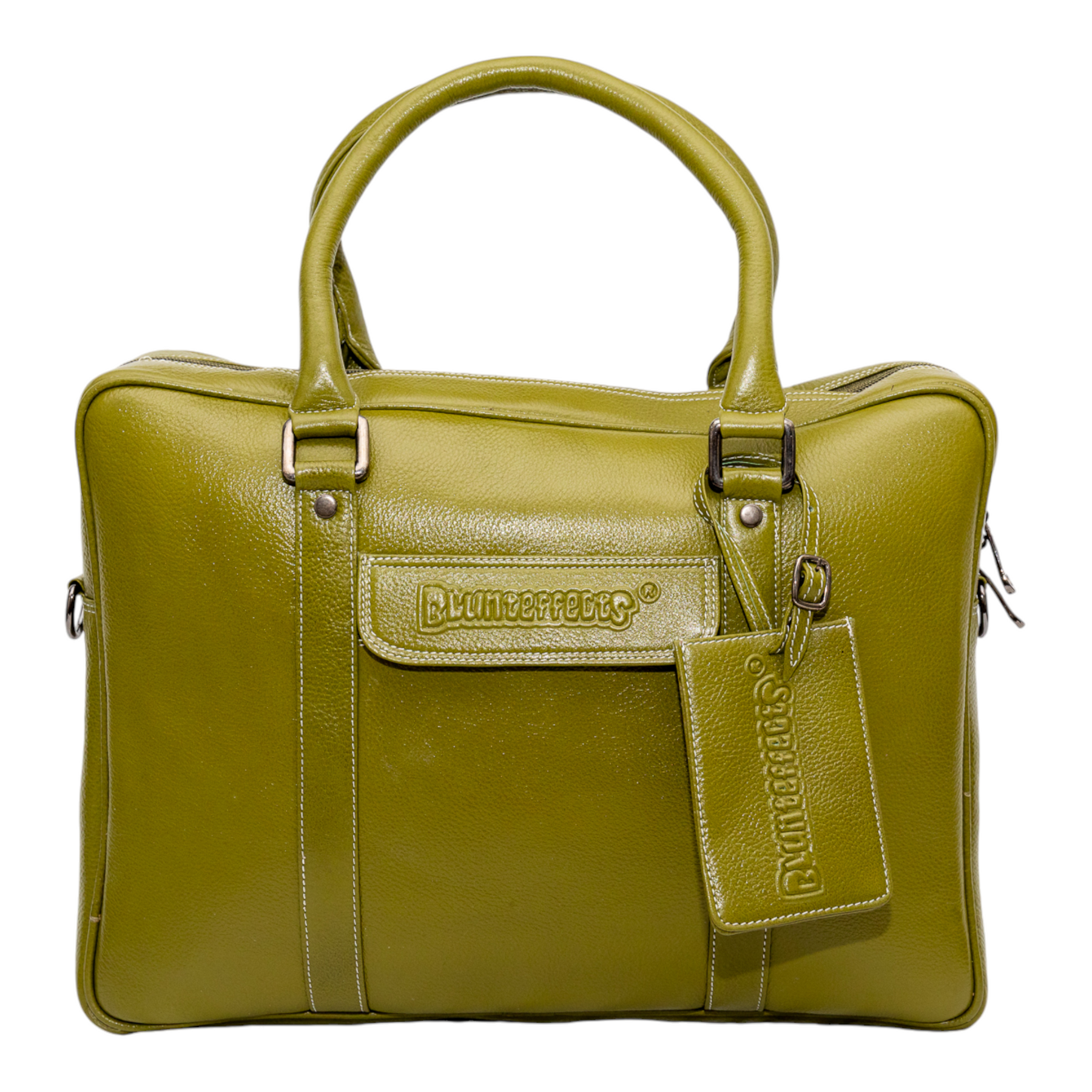 Discover the Blunteffects® Leather Laptop Bag, crafted in India from premium olive green leather. Perfect for travel and everyday use, this stylish bag features our brand embossed for a touch of sophistication. Durable, spacious, and timeless—your ideal companion on every journey.