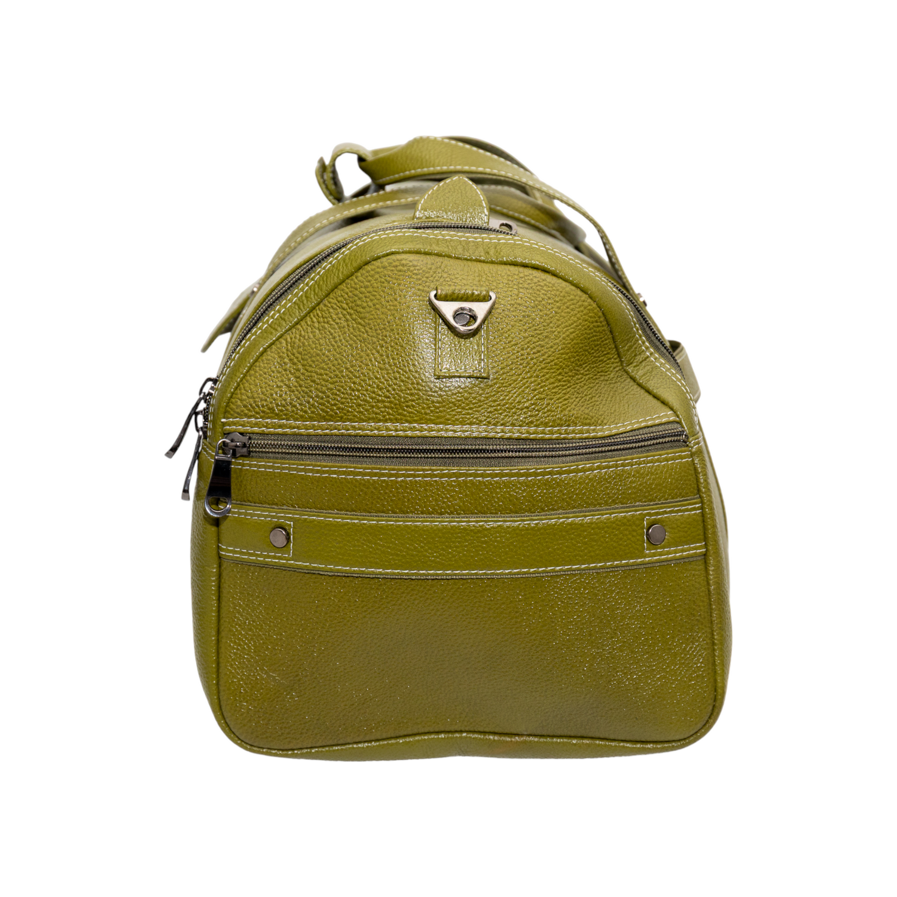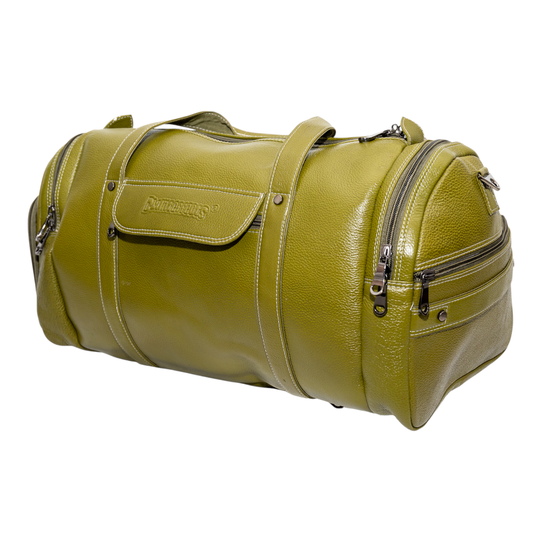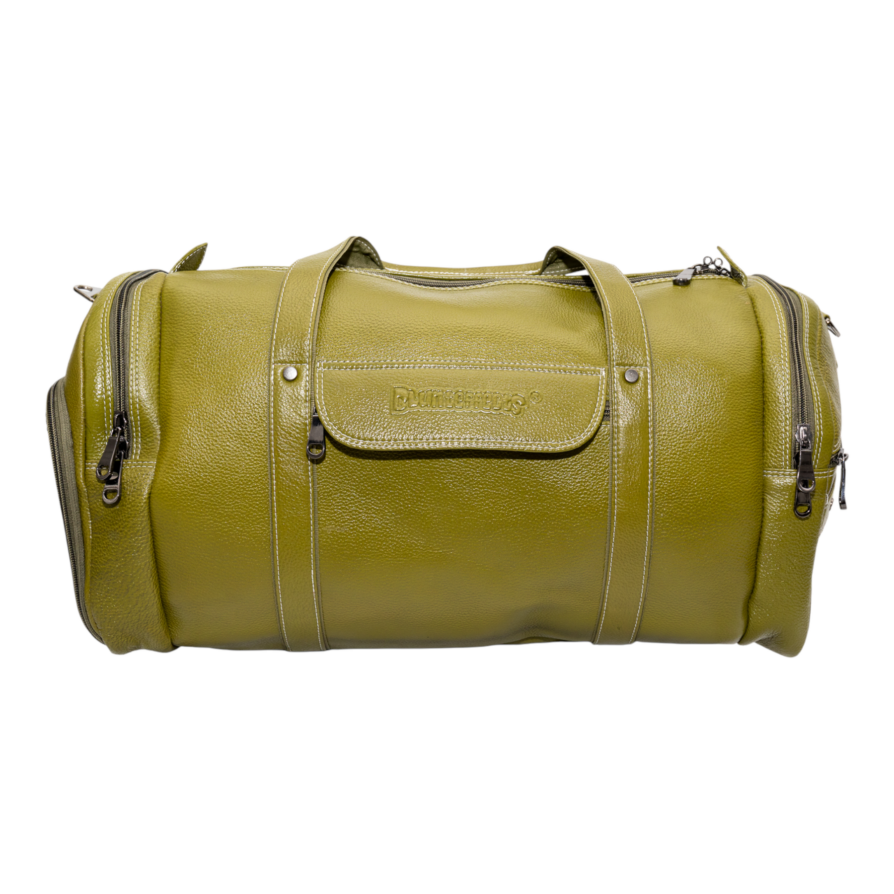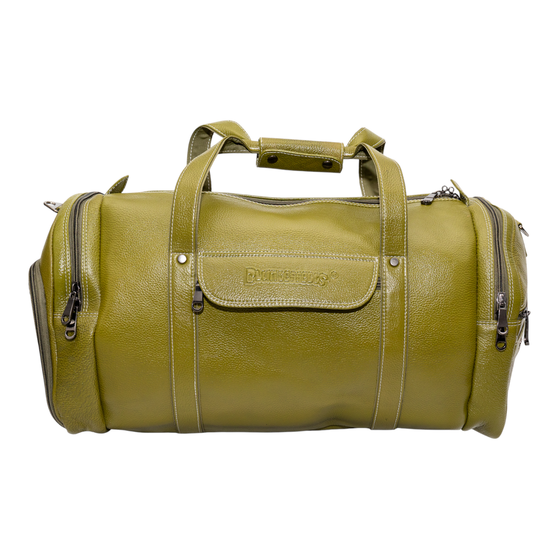 Discover the Blunteffects®  Leather Duffle Bag, crafted in India from premium olive green leather. Perfect for travel and everyday use, this stylish bag features our brand embossed for a touch of sophistication. Durable, spacious, and timeless—your ideal companion on every journey.